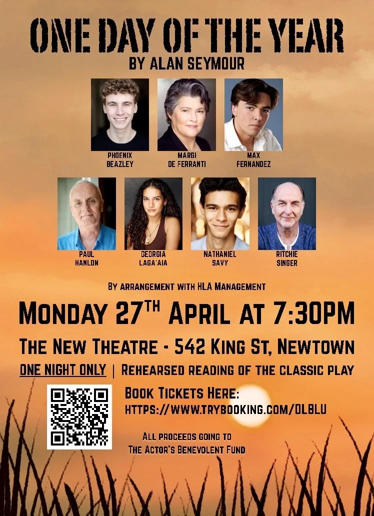 Alf’s son, Hughie and his girlfriend, Jan, plan to document Anzac Day for the university newspaper, focusing on the drinking on Anzac Day. For the first time in his life, Hughie refuses to attend the dawn service with Alf. When he watches the march on television at home with his mother and Wacka, he is torn between outrage at the display and love for his father. A rehearsed reading starring Phoenix Beasley, Margi De Ferranti, Ritchie Singer, Max Fernandez, Paul Hanlon, Georgia Laga’aia and Nathaniel Savy.