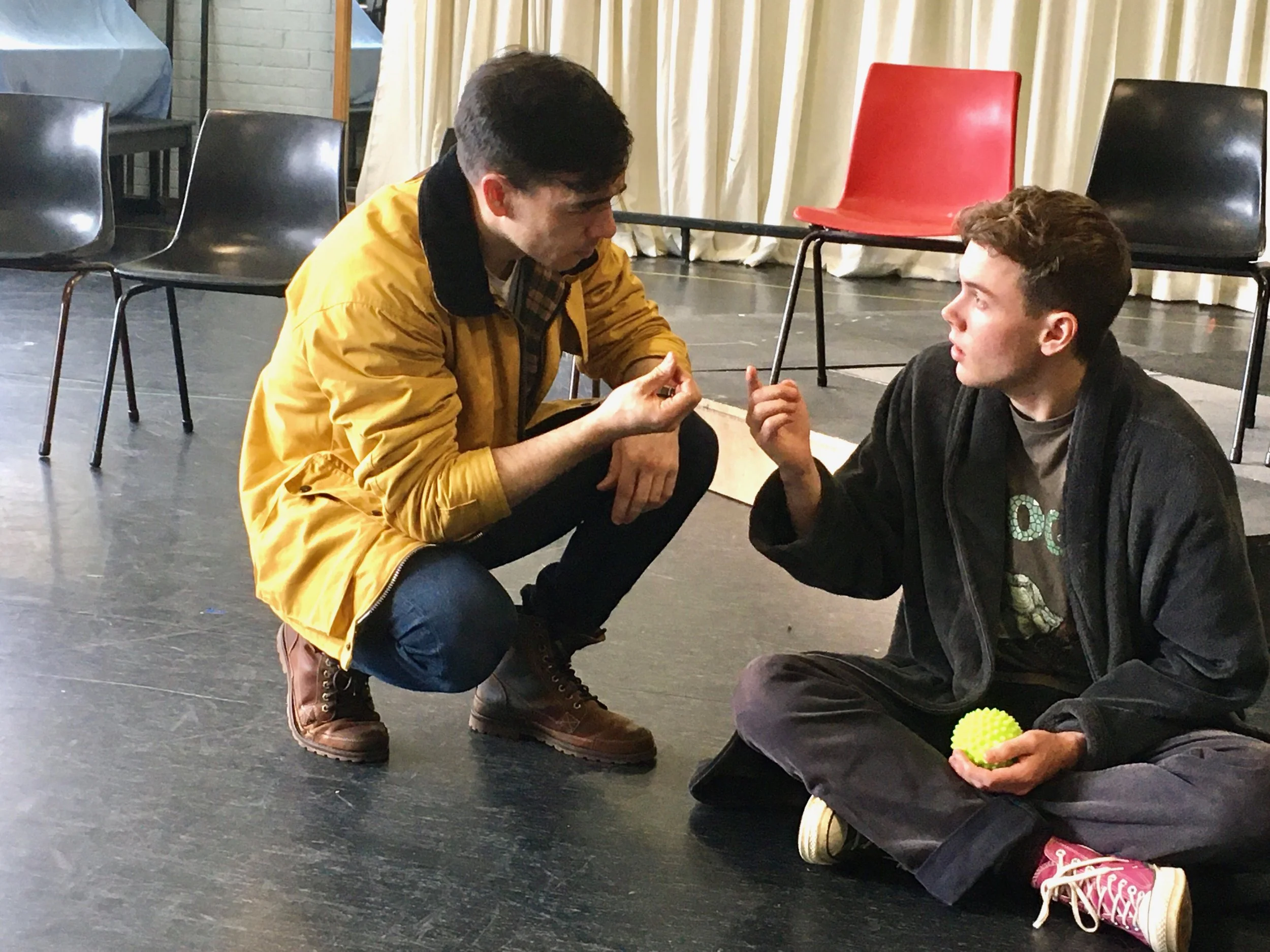 It’s very hard to get a good rehearsal photo without interrupting rehearsals! High end, high speed cameras are best since interesting action photos without costume or set and often in a difficult space are usually tight (ie close-up) not wide shots. As above, light and focus are your biggest challenges.